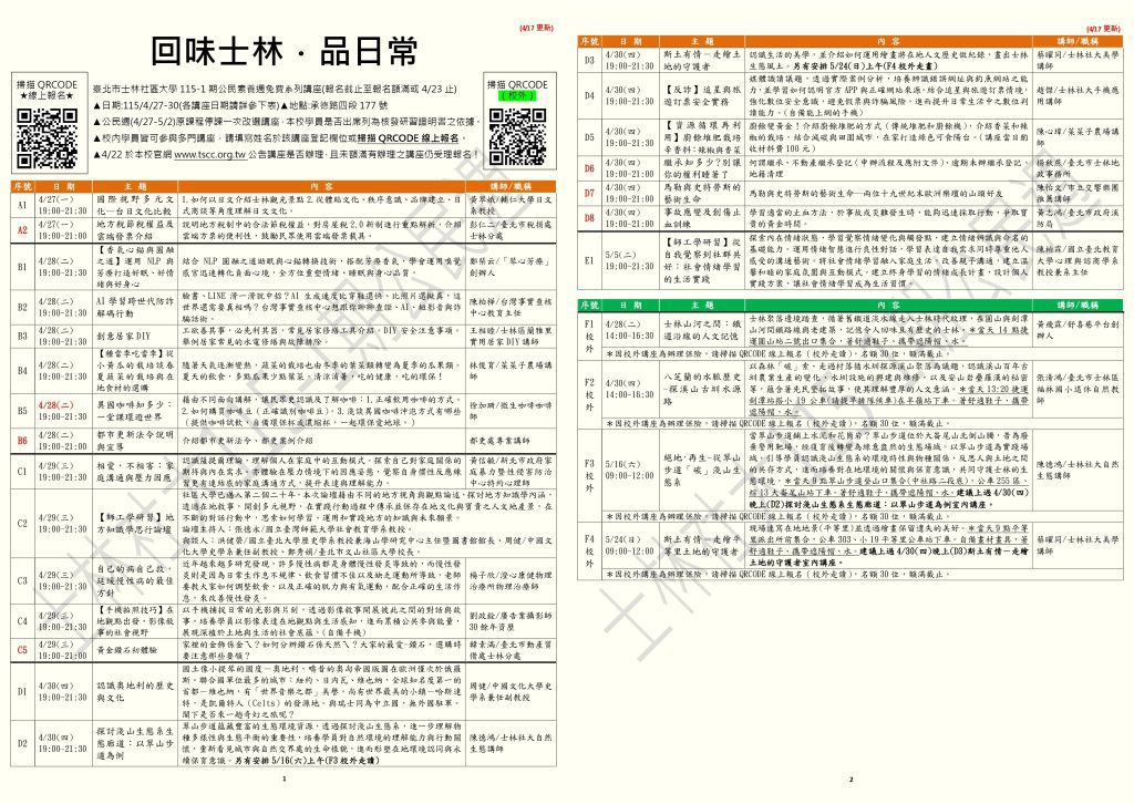 臺北市士林社區大學115-1期公民素養週免費系列講座(報名截止至報名額滿或4/23止)🔺日期:115/4/27-30(各講座日期請詳參下表)